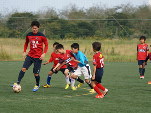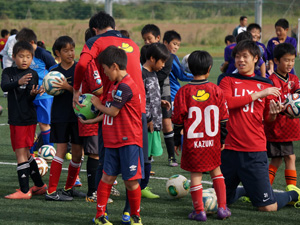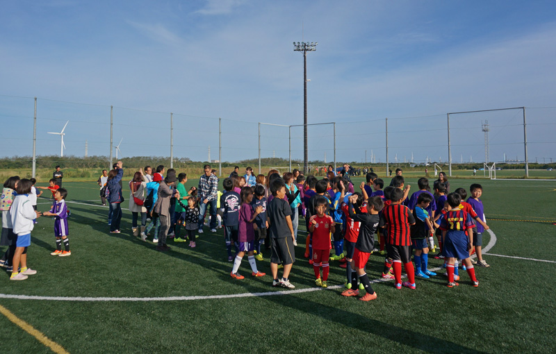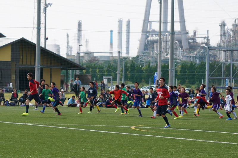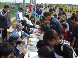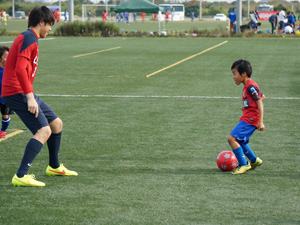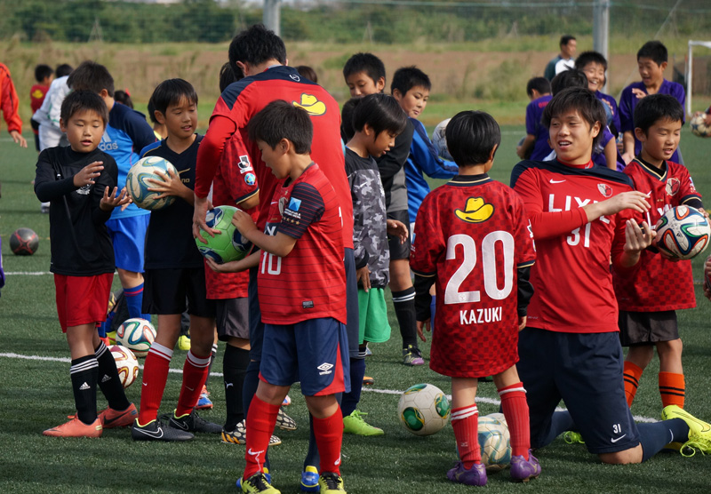 今年も鹿島アントラーズFCの協力により選手2名(24伊東選手、31小泉選手)を招いて、サッカースクールや選手と一緒に試合をしたり、アントラーズ○・×クイズが行われたりと盛りだくさんの内容になり大変盛り上がりました。