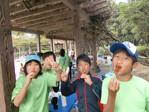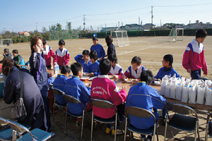 各学年に担当コーチが2名、子供たちと一緒に汗を流しています。卒団生(中学一年生)も参加し、夏の合宿、冬の親子サッカーがあり、今年度から夏には全学年でバーベキュー大会を実施、コーチ、団員、父兄同士の交流をふかめています。